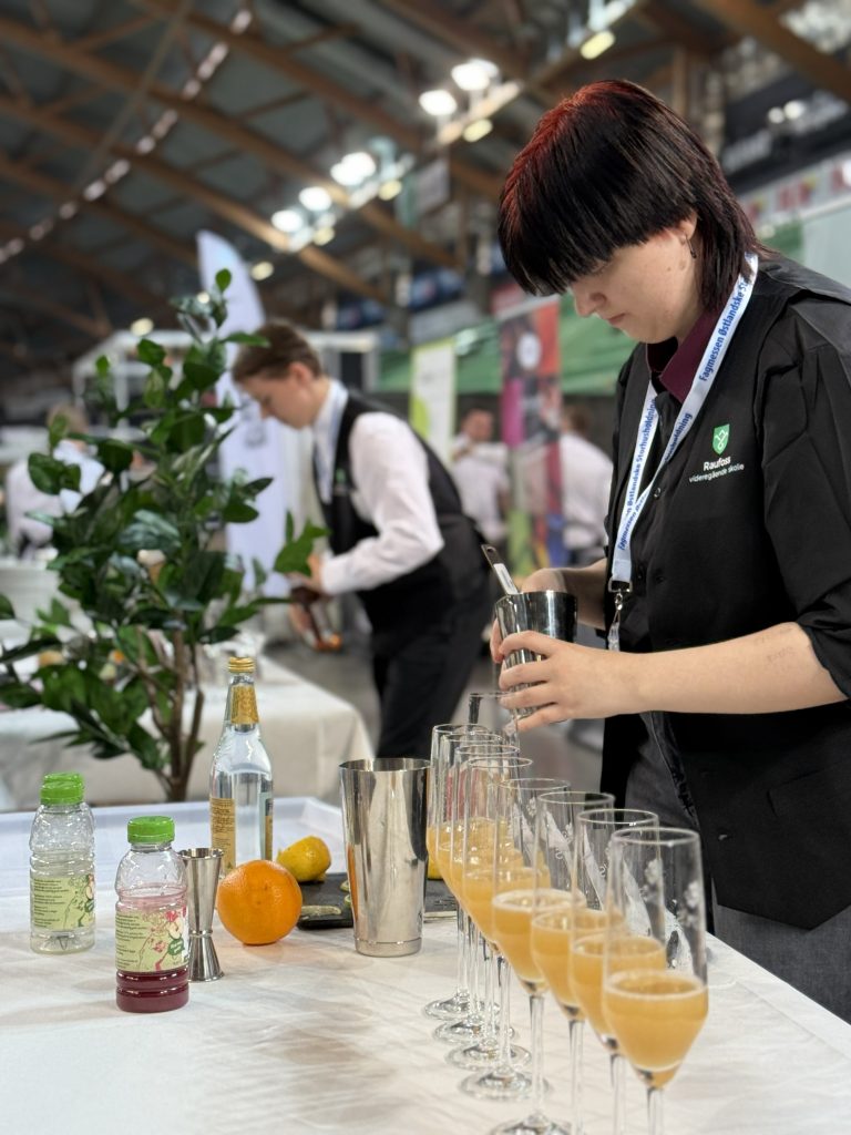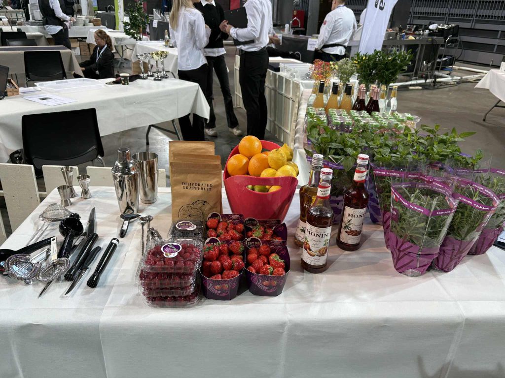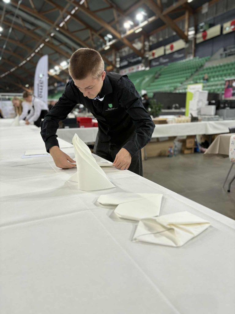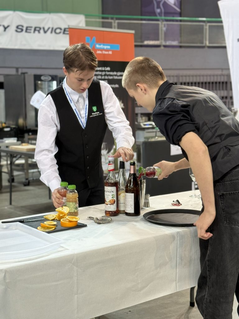 Sammen med konkurranser for lærlingene, skulle også elevene til dyst i servitørkonkurranse. På kort tid skulle elev-lagene fra Lillehammer, Storhamar og Raufoss vgs, dekke opp til tre-retters, lage blomsteroppsatser, samt mikse aperitiff til dommere og publikum.